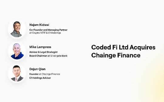 Coded Fi Ltd以4700万美元估值收购Chainge Finance|并任命金融界杰出人士加入其董事会