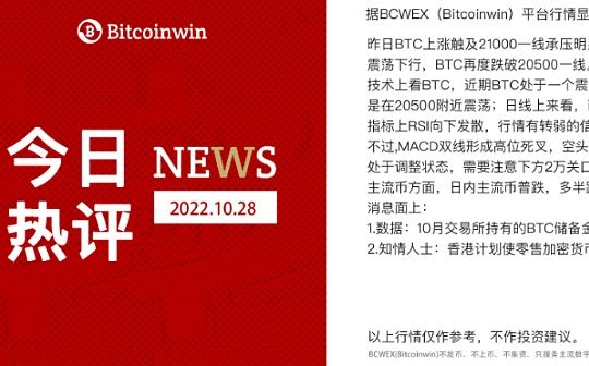 Bitcoinwin:2022.10.28 BTC行情分析及市场动态