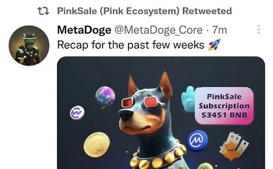 狗王发布2023年生态规划 子币项目元狗MetaDoge超私破1500BNB