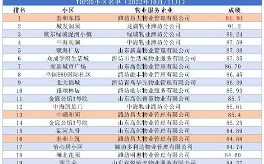 成绩出炉 潍坊昌大物业所辖三小区考核排名亮了