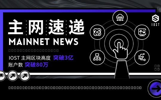 主网速递|IOST 主网区块高度突破3亿 账户数突破80万
