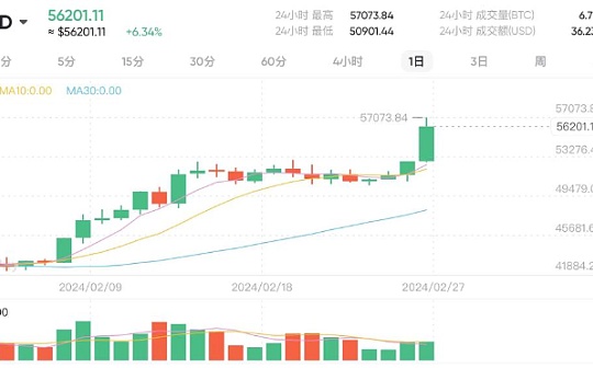 比特币突破5.7万美元,开启狂暴模式,后续难以想象!
